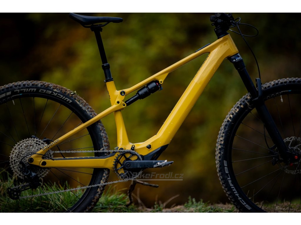 Zbrusu nový lehký karbonový celoodpružený rám vyvinutý speciálně pro lehká elektrokola. Geometrie je nastavená podobně jako u neelektrických kol a díky tomu je kolo velmi dobře ovladatelné ve sjezdech a technických pasážích. Rám je vybaven UDH kompatibilitou a ICR systémem pro vedení kabeláže hlavovým složením.
