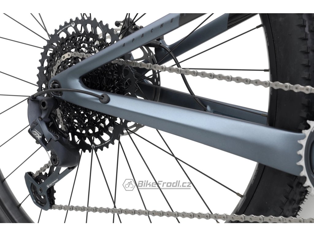 Celoodpružené jízdní kolo APACHE s koly 29" , karbonovým rámem, vzduchovým odpružením FOX a převody 1×12 se stane vaším ideálním parťákem v terénu.