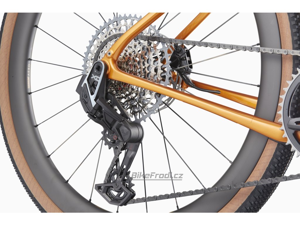 - Nové řadicí/brzdové páky SRAM Force AXS a kliky XPLR ve spojení se zadní přehazovačkou XO Transmission a kazetou 10-52 MTB - ostré, bezdrátové elektronické řazení s obrovským rozsahem převodů