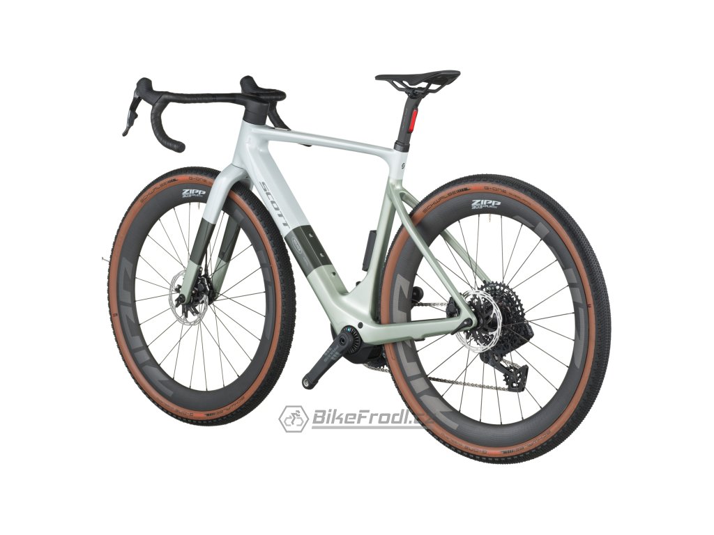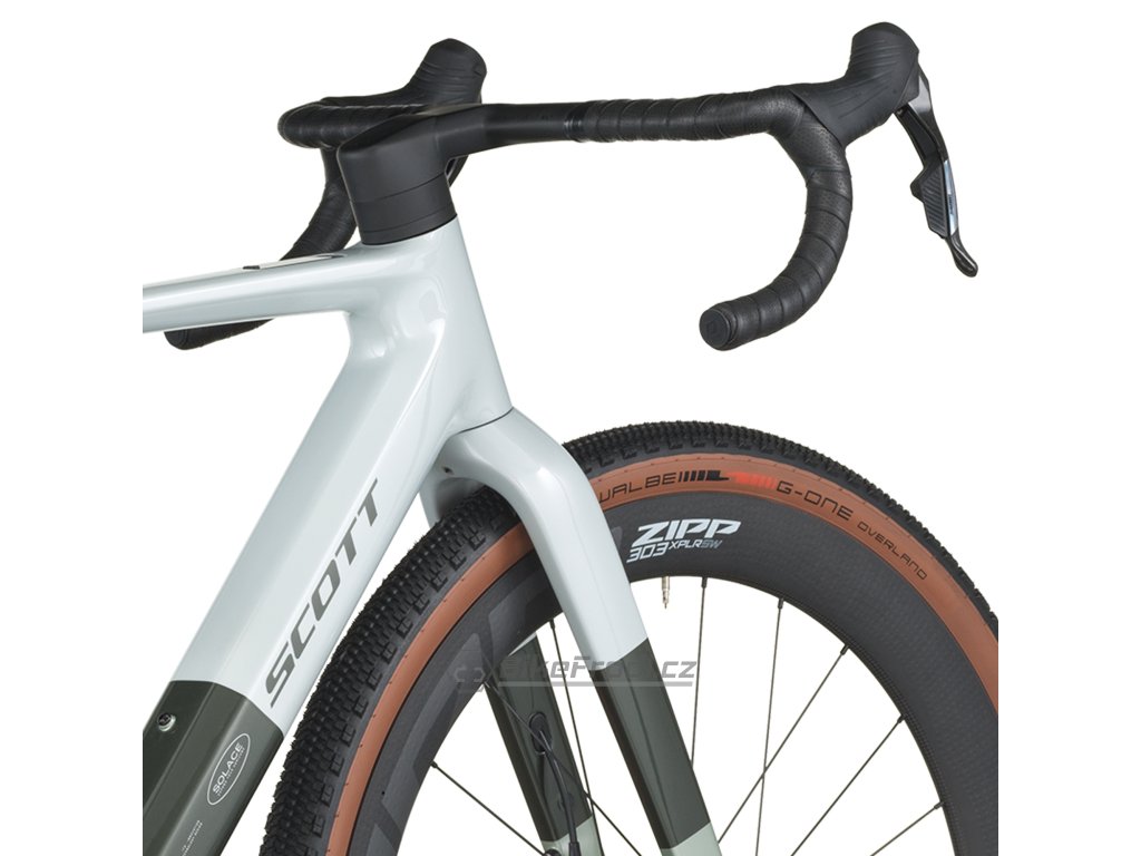 Solace Gravel eRIDE má pohodlnou geometrii, jízdní pozice inspiruje k dlouhým vyjížďkám. Spolu s lehkým karbonovým rámem, dostatečným prostorem v oblasti, kudy jím prochází kolo s pláštěm, a po vzoru modelu SCOTT Addict Gravel, nabízí elektrokolo Solace Gravel eRIDE jízdní zážitek povzbuzující k průzkumu všech prašných cest v okolí.