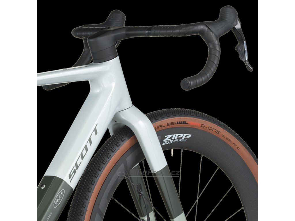 Solace Gravel eRIDE má pohodlnou geometrii, jízdní pozice inspiruje k dlouhým vyjížďkám. Spolu s lehkým karbonovým rámem, dostatečným prostorem v oblasti, kudy jím prochází kolo s pláštěm, a po vzoru modelu SCOTT Addict Gravel, nabízí elektrokolo Solace Gravel eRIDE jízdní zážitek povzbuzující k průzkumu všech prašných cest v okolí.