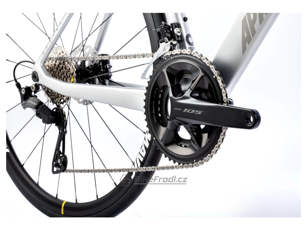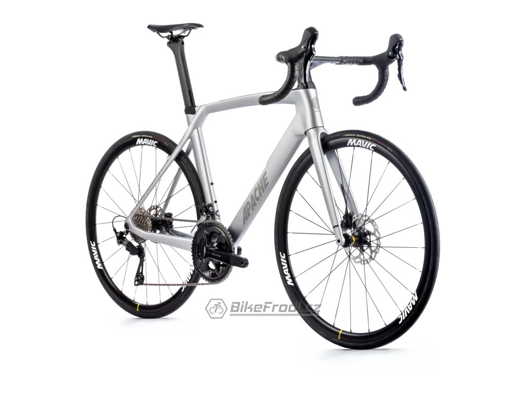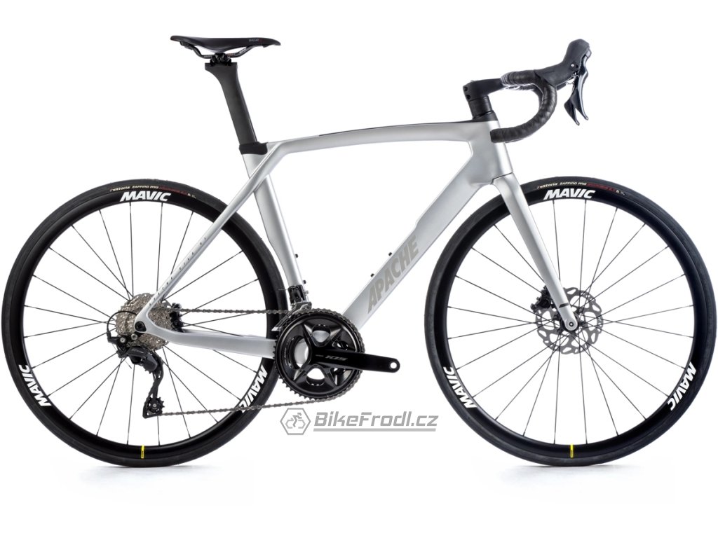 Silniční kolo Apache Gila RS C3je postavené na prémiovém karbonovém rámu , vybaveném spolehlivou sadou Shimano 105 s pohonem 2×12 , integrovaným kokpitem, karbonovými kombo řidítky s aerodynamickou karbonovou sedlovkou a zapletnými koly Mavic Ksyrium 30.