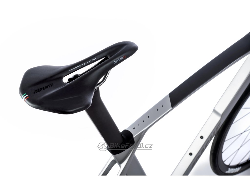 Výbava přesně taková, jakou jí chcete mít. Gila RS splňuje všechny nároky moderního silničního kola v dostupné cenové kategorii. Aerodynamiku karbonové rámové sady jsme ještě více vylepšili karbonovými kombo řídítky s integrovanými bowdeny a hadicemi, doplněné o aerodynamickou karbonovou sedlovku a to vše osazené spolehlivou sadou Shimano 105, připravenou splnit všechny vaše sportovní cíle. Krásu celého kola podtrhují doplňky od prémiové italské značky Repente, se kterými budete hvězdou každého silničního pelotonu.