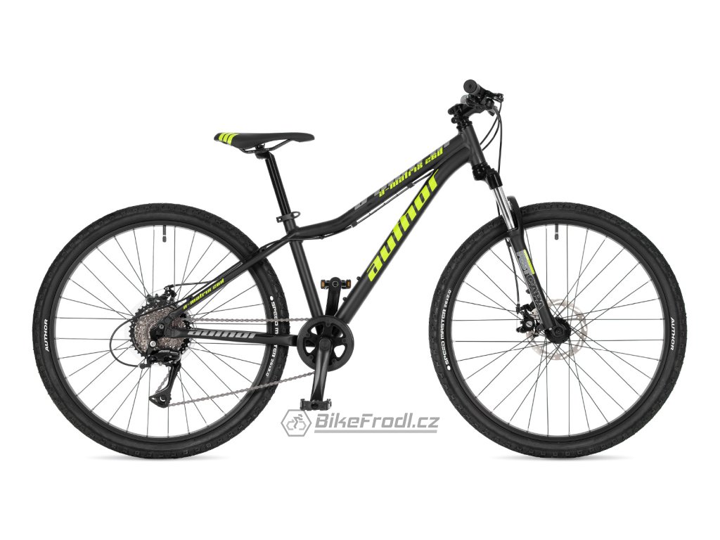 Juniorský model Author A-Matrix D 26 je univerzální kolo pro děti výšky 130–150 cm. Disponuje koly o průměru 26“ a speciálním sníženým duralovým rámem, díky čemuž i mladší nezkušený jezdec snadno projede i náročnější technické pasáže. K tomu mu dopomáhá i kvalitní značková odpružená vidlice RST. Neztratí se ale ani na asfaltu, díky většímu průměru kol snadno odvaluje a dovolí absolvovat i delší vyjížďky. Jeho další výhodou jsou účinné kotoučové brzdy Tektro, které zajistí bezpečné zpomalení za všech podmínek. O řazení se postará kvalitní 8rychlostní přehazovačka Shimano Acera ve spolupráci s moderním jednopřevodníkem. Spolehlivé a dobře ovladatelné kolo do každého terénu.