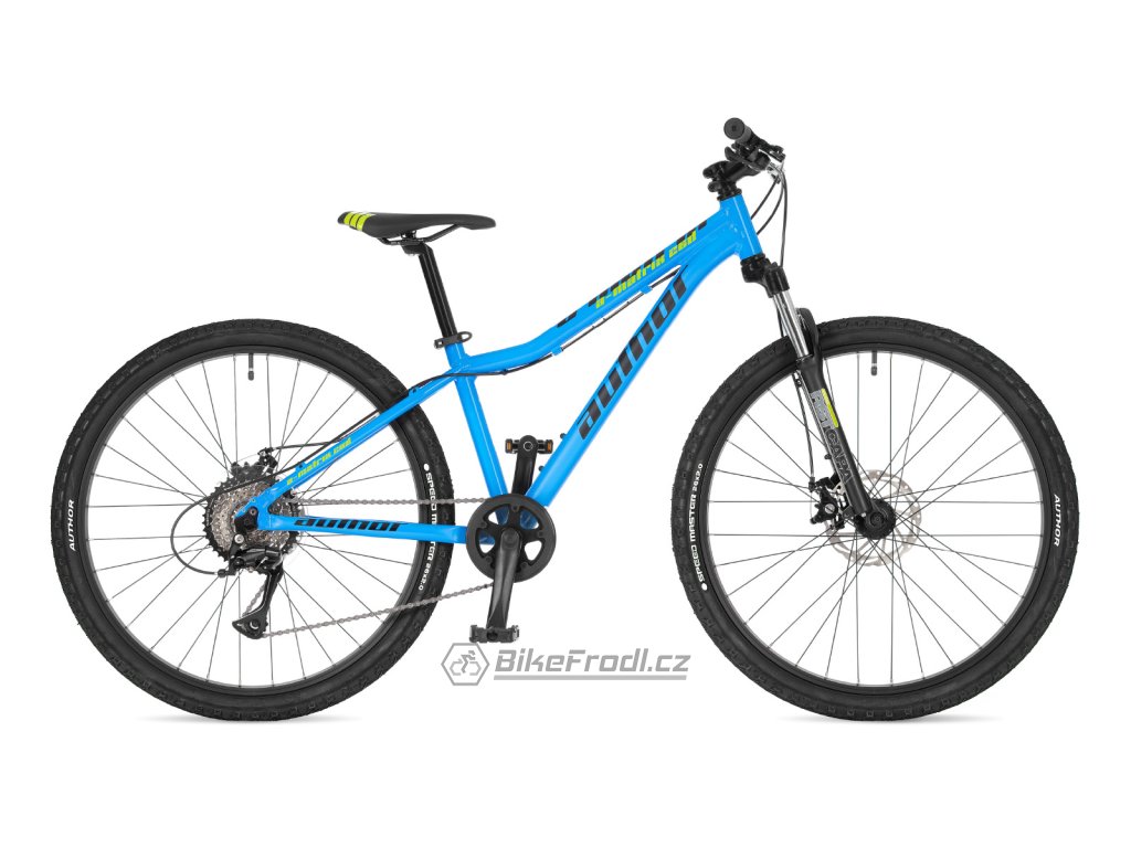 Juniorský model Author A-Matrix D 26 je univerzální kolo pro děti výšky 130–150 cm. Disponuje koly o průměru 26“ a speciálním sníženým duralovým rámem, díky čemuž i mladší nezkušený jezdec snadno projede i náročnější technické pasáže. K tomu mu dopomáhá i kvalitní značková odpružená vidlice RST. Neztratí se ale ani na asfaltu, díky většímu průměru kol snadno odvaluje a dovolí absolvovat i delší vyjížďky. Jeho další výhodou jsou účinné kotoučové brzdy Tektro, které zajistí bezpečné zpomalení za všech podmínek. O řazení se postará kvalitní 8rychlostní přehazovačka Shimano Acera ve spolupráci s moderním jednopřevodníkem. Spolehlivé a dobře ovladatelné kolo do každého terénu.