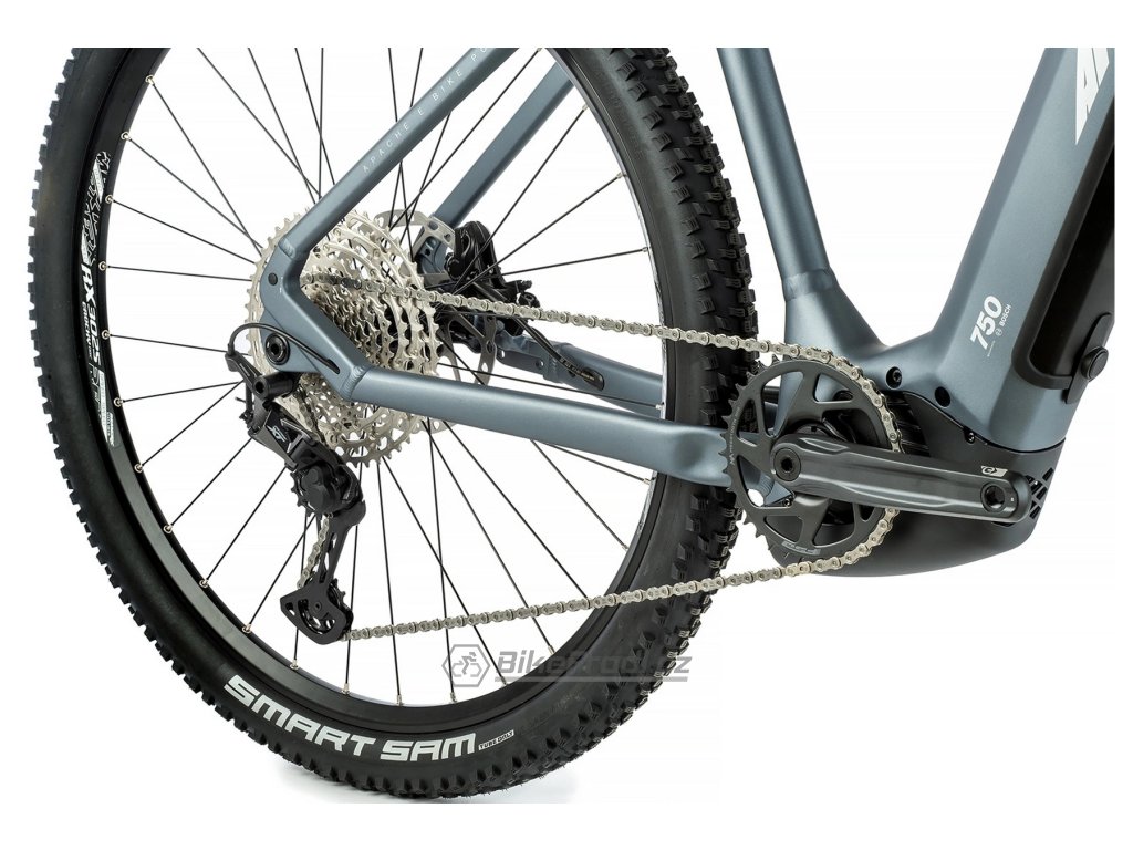 Apache Hupahu 1 Bosch je horské elektrokolo s hliníkovým rámem, které je vybaveno středovým motorem Bosch Performance CX , baterií o kapacitě 750 Wh , pohonem Shimano 1x12 , vzduchovou vidlicí.