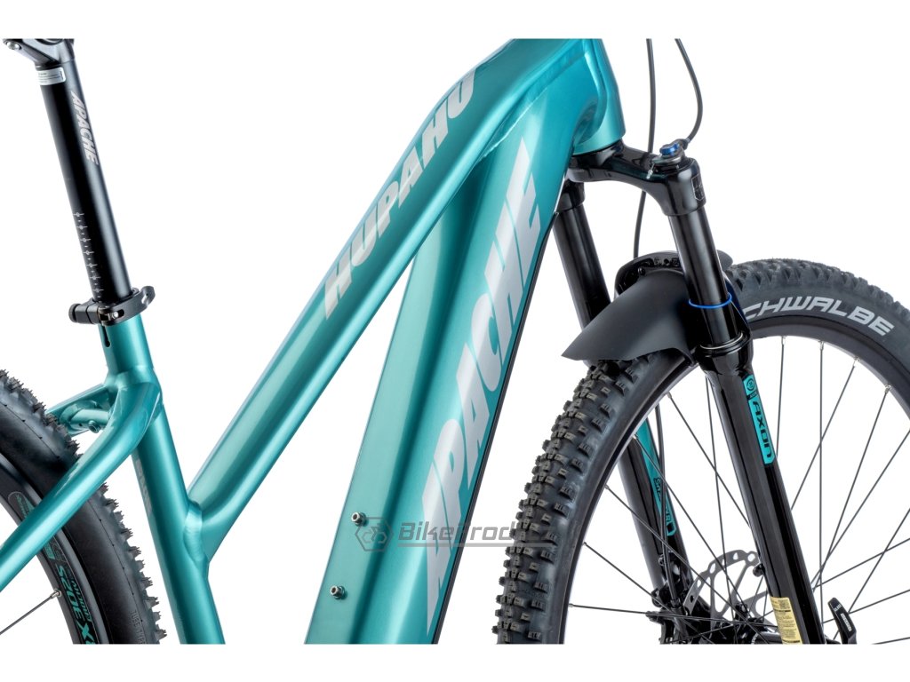 Apache Hupahu 2 Bosch Lady je horské elektrokolo s hliníkovým rámem, které je vybaveno středovým motorem Bosch Performance CX , baterií o kapacitě 750 Wh apřídavnou baterií Bosch PowerMore 250 Wh , pohonem Shimano 1x12 a vzduchovou vidlicí.