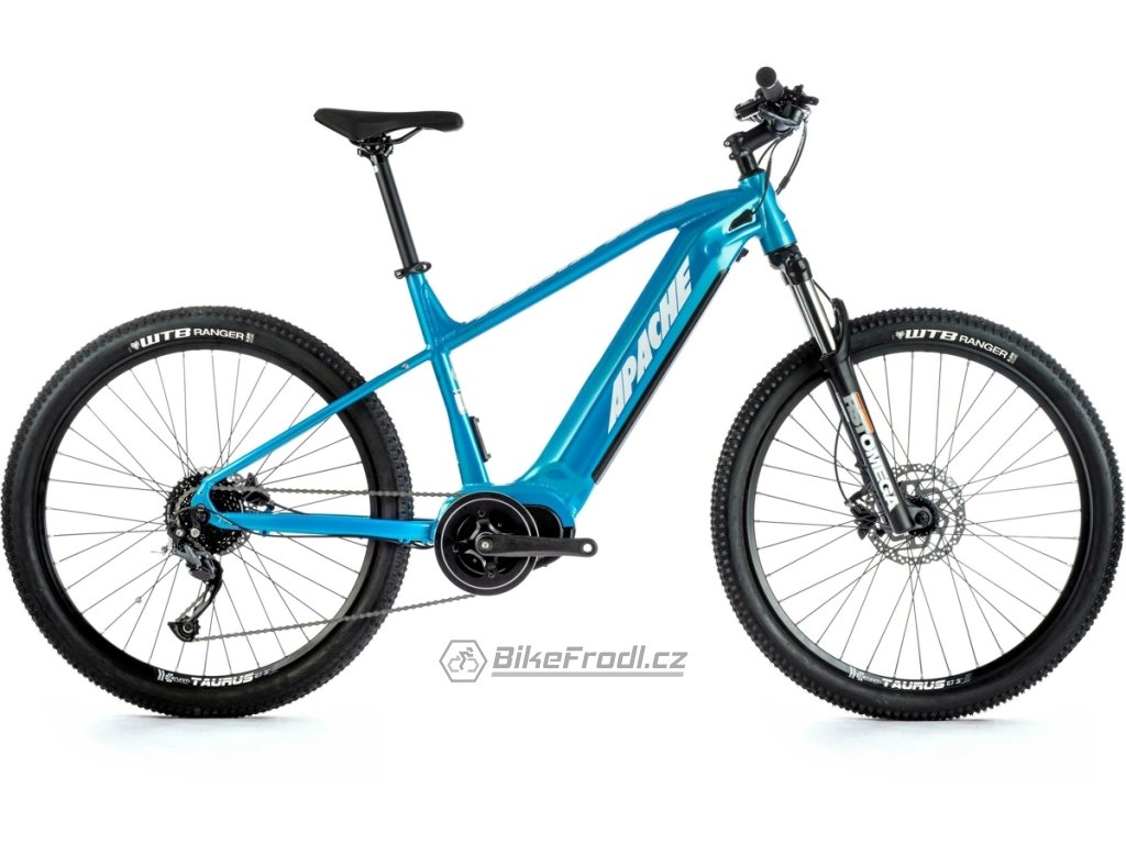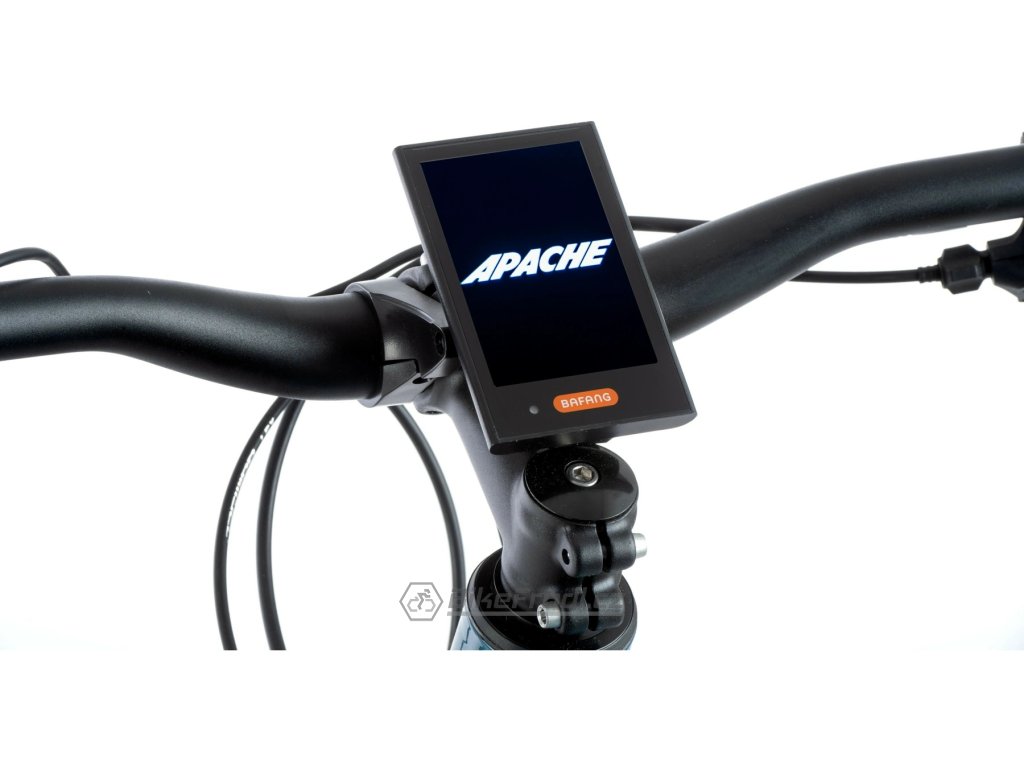 Horské elektrokolo Apache Tanka Tate MX3 400 s hliníkovým rámem je vybaveno středovým motorem Bafang M400 , baterií o kapacitě 655 Wh , pohonem Shimano 1x9 a uzamykatelnou vidlicí.