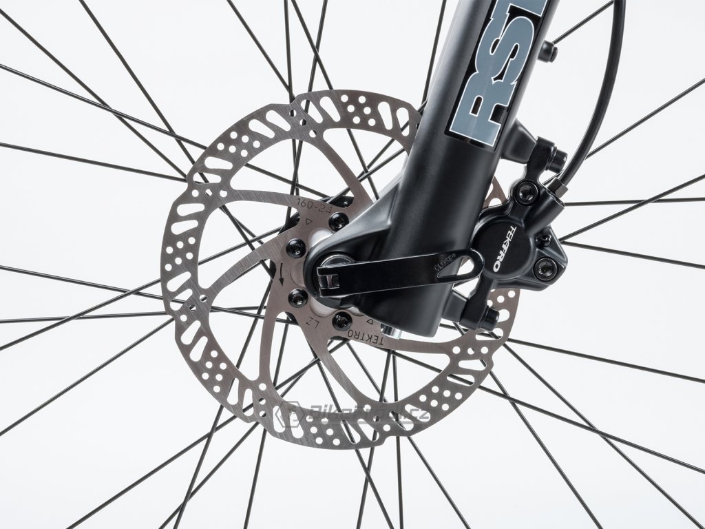 Duralový rám. Uzamykatelná vidlice RST Blaze 29 ML. Hydraulické kotoučové brzdy TEKTRO.