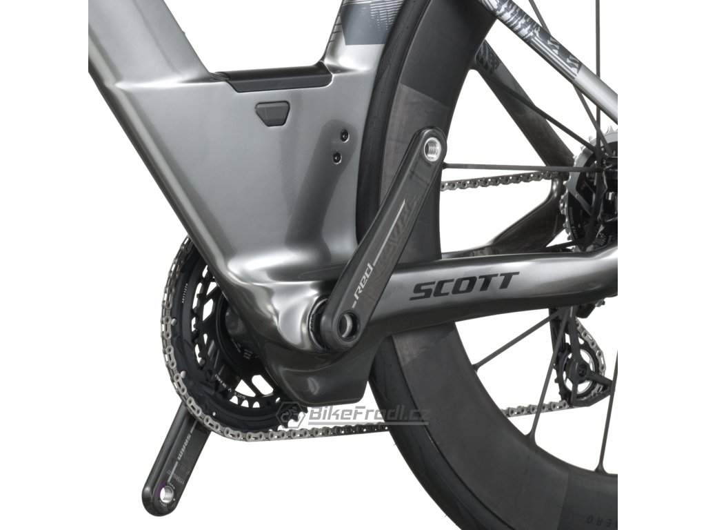 Nejaerodynamičtější pozice spodní rámové trubky by byla hned za předním pláštěm, ale sebemenší pohyb předního kola by okamžitě vyvolal silný aerodynamický vír a významně zvýšil odpor vzduchu. Rozsáhlým testováním jsme zjistili, že druhá nejrychlejší pozice je, když mezi předním pláštěm a spodní trubkou vznikne výrazná mezera. V tom případě je to ta nejrychlejší poloha v reálných podmínkách. Více informací naleznete zde: https://www.scott-sports.com/plasma-6